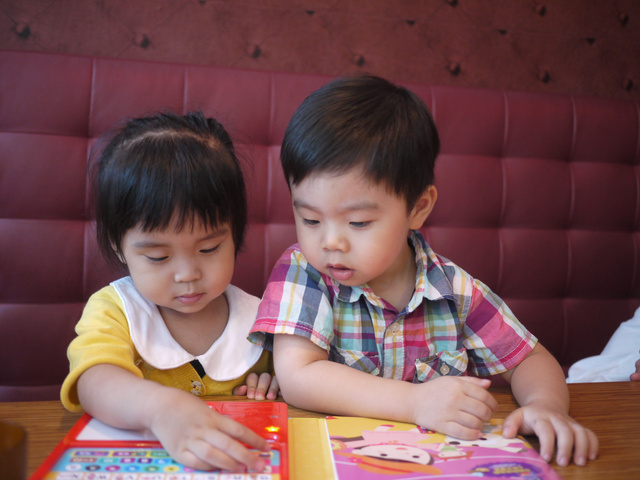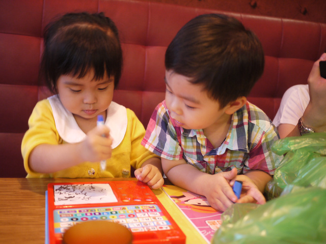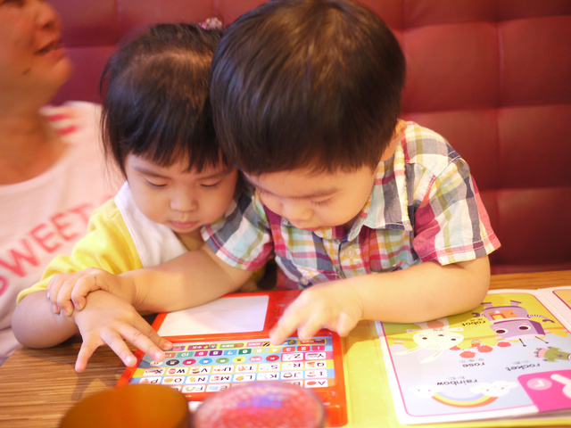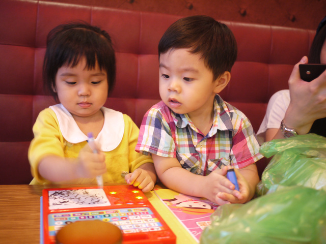小朋友們很認真的玩玩具書,我們大人也終於可以好好聊聊天了!!![]()